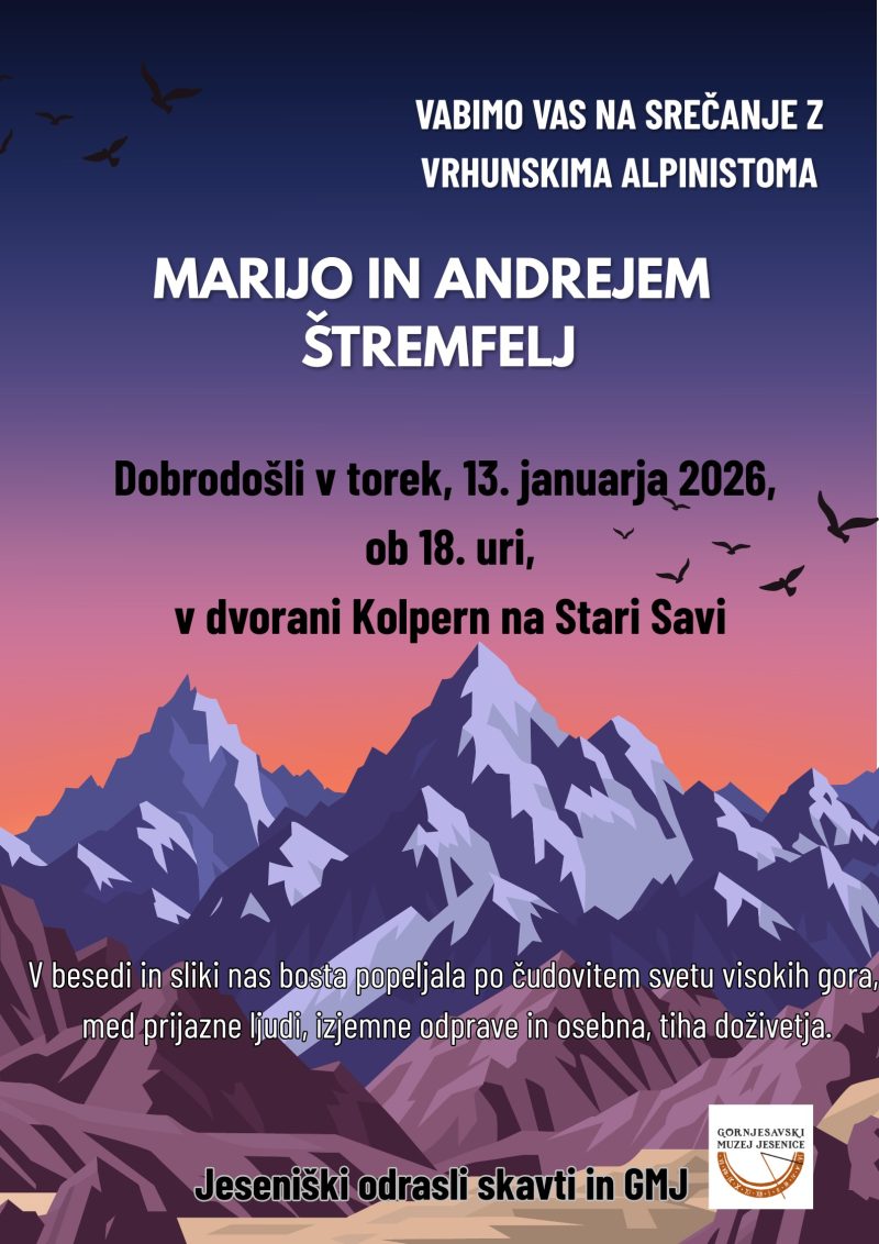 Dobrodošli v torek, 13. 1. 2026, ob 18. uri, v dvorani Kolpern, v Slovenskem železarskem muzeju na Stari Savi.