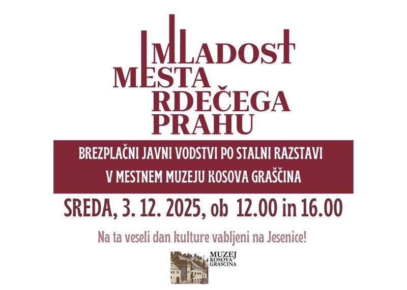3. december 2025 ob 12. in 16. uri: Ta veseli dan kulture – brezplačni javni vodstvi po Stalni razstavi, Mestni muzej Kosova graščina Nina Hribar2025-11-26T11:12:04+01:0026 novembra, 2025|Gornjesavski muzej Jesenice, Kosova graščina|