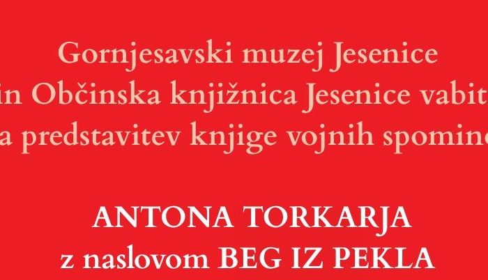 3. december 2025 ob 18. uri: Ta veseli dan kulture – predstavitev knjige Antona Torkarja »Beg iz pekla”, Mestni muzej Kosova graščina