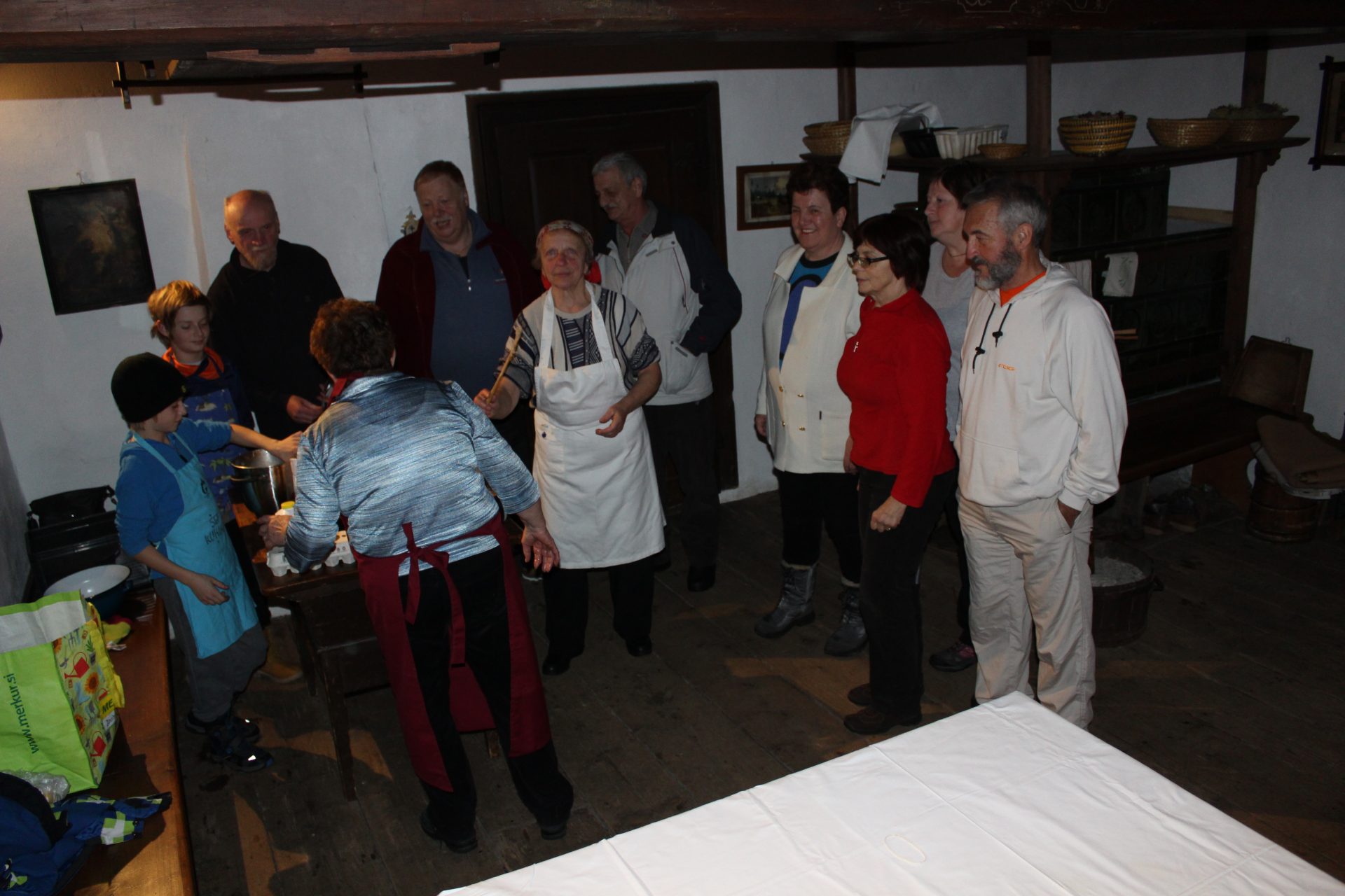 [:SL]V zadnjih desetletjih smo priča neverjetnim spremembam načina življenja na vseh področjih. Prehrana ni izjema. Na eni strani na vse pretege skušamo slediti najnovejšim trendom zdrave prehrane, na drugi strani nas nenehna bitka s časom sili v hitro prehrano. Zato v Gornjesavskem muzeju s kulinaričnimi delavnicami v Liznjekovi domačiji skušamo ohraniti in posredovati bogastvo znanja tradicionalne priprave vsakdanjih in prazničnih jedi. Letos smo se mesečno dobivali ob peki kruha. »Aprilski« kruh smo namazali z maslom, ki smo ga izdelali v pinji, Mateja Reš nam je v oktobru predstavila peko kruha z drožmi: pripravili smo mešani kruh, ovsena, ajdova, ržena, pirina in pšenična zrna smo najprej zmleli v mlinu na kamne, moko presejali in zamesili čudovito testo. Pred veliko nočjo spečemo preste, s katerimi okrasimo prajtle, kakor cvetnonedeljske butarice imenujejo Kranjskogorci. Kruh je imel v krščanski tradiciji vedno velik pomen in potica je praznični kruh, brez katerega enostavno ni božiča. Zato smo v decembru, tako kot vsak kruh, ki ga pripravimo v Liznjekovi domačiji, v krušni peči spekli potico. Tisto pravo božično, z orehovim nadevom ali budlo po domače. In je zadišalo po celi hiši: po dobrem, po lepih spominih, po praznikih.