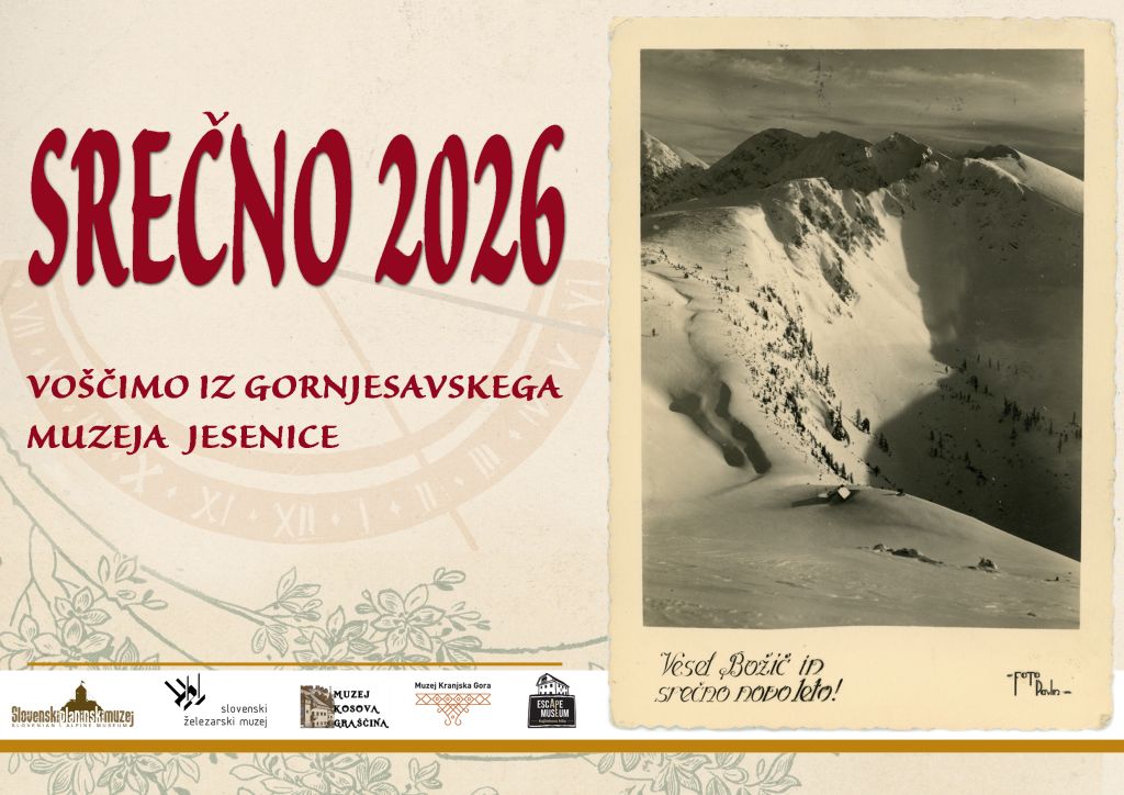 VOŠČILO iz Gornjesavskega muzeja Jesenice 23 Nina Hribar2025-12-20T11:28:29+01:0023 decembra, 2025|Gornjesavski muzej Jesenice, Kajžnkova hiša, Kasarna, Kolpern, Kosova graščina, Liznjekova domačija, Ruardova graščina, Slovenski planinski muzej, Stara Sava|